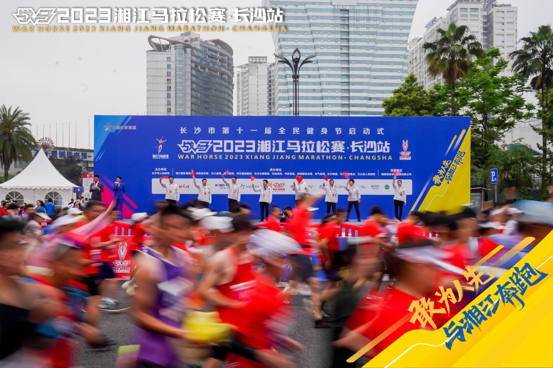 战马2023湘江马拉松赛长沙站由长沙市人民政府主办,湘江新区管委会、市委宣传部、市工信局、市公安局、市交通运输局、市卫生健康委、市应急局、市体育局、市城管执法局、市气象局、长沙晚报、市广播电视台、天心区人民政府承办,湖南意昂体育管理有限公司运营。